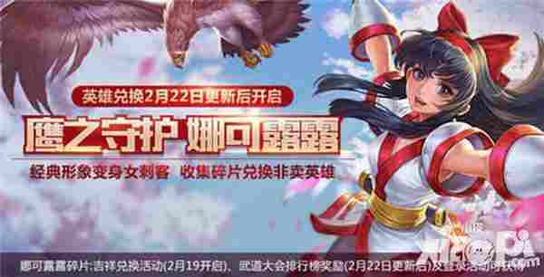 兑换方式:2月22日版本更新后,通过累积的60个娜可露露碎片即可免费换取英雄