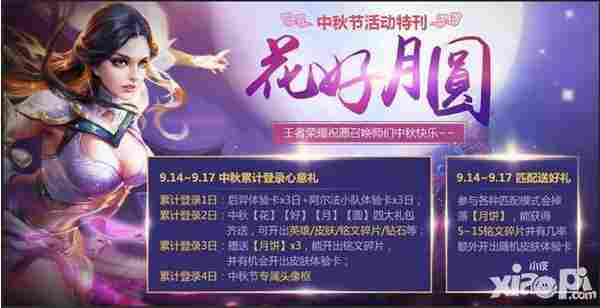 活动期间,参与5V5各模式对战,掉落中秋月饼,打开获得随机数量铭文碎片,并有几率开出随机皮肤体验卡一张;
