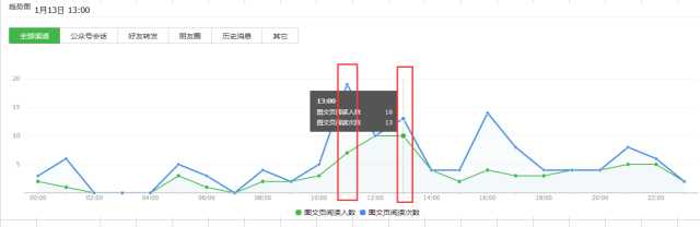这说明公众号的最高流量点有可能在15点和8点这两个时间。有了这样的结论,我们就可以调整推文时间了。不要拍脑门去主观臆断、或者只通过自己的个人习惯去猜测用户的习惯,数据才是最重要的凭据。
