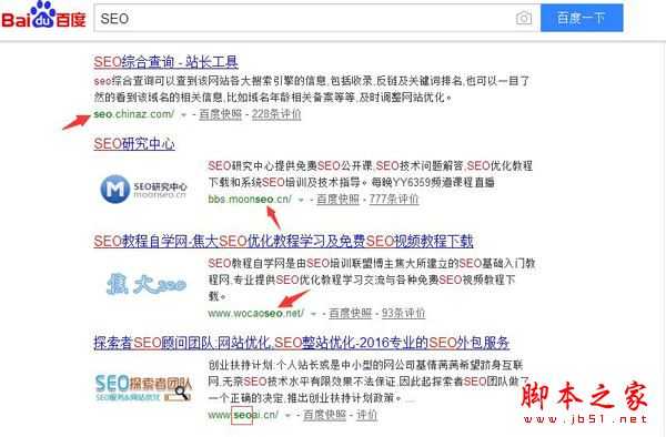 路径名称也能做匹配?开玩笑吧?没有开玩笑,不理解的可看下图,从搜索“SEO”这个关键词来看,可以隐约看出关键词在网址那一栏都有加粗的状态,若是做美甲行业,可以用meijia来命名,一来是可以匹配,二来是方便记忆,当然这个局限性比较强,并不是用了关键词的全拼做路径就一定能优化上去。