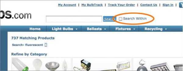 bulbs.com里的局部搜索是以勾选框的方式出现