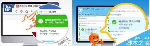 4. 用户终端展示(推荐):这种方式就是在用户终端如:浏览器、聊天工具、安全软件等展示认证标识,这种展现的效果要好一些。
