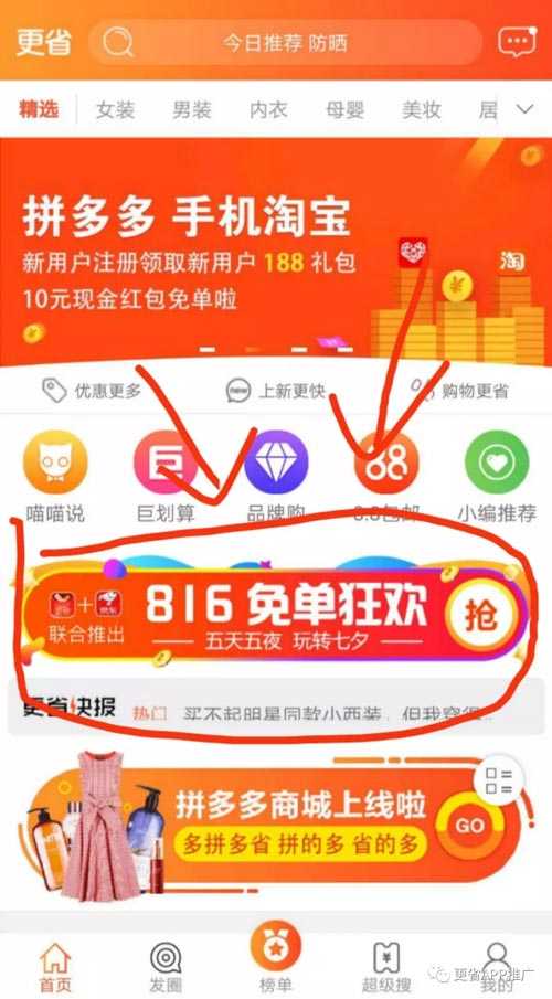 2.下载并登录激活更省app,在更省app的首页,点击下图的816免单狂欢