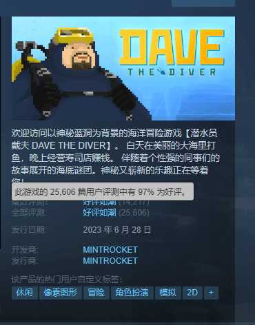 本作目前在Steam商店评价为好评如潮,25688名玩家评测,超过97%的玩家给出了好评。