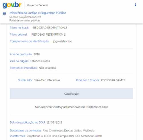 据网友发现,巴西评级网站显示,《荒野大镖客:救赎2》的登陆平台多了一个Switch,暂不知晓该信息是何时更新的。