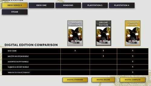 社区内,很多人对其付费内容的措辞感到困惑。根据游戏的官方网站,标准版和豪华版将包含一个名为“大师度假套装”的内容,描述如下:“使用你的《如龙8:无尽的财富》通关数据,在三个难度(普通、困难和传奇)中进行新游戏+。体验全新的‘大浪’故事,并享受此套装中独有的特殊服装和物品。”