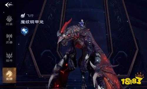 魔纹钢甲龙是一个可以在天上飞行的坐骑,它的全身颜色是由黑色以及红色交织的,在外形上大家可以很清楚的看到,它的四个爪子非常的锋利,并且它的外形其实是更像西方龙的,两个翅膀比它本身的体型还要庞大,使用翅膀进行飞行的时候会带来一些光效效果,带来的速度加成也是100。