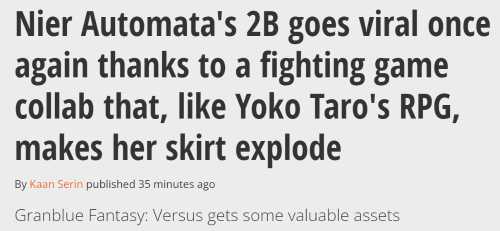 据gamesradar报道,《尼尔:机械纪元》主人公 尤尔哈2B 的热度在最近又一次迎来上涨,而这次主要归功于格斗游戏《碧蓝幻想Versus:崛起》。